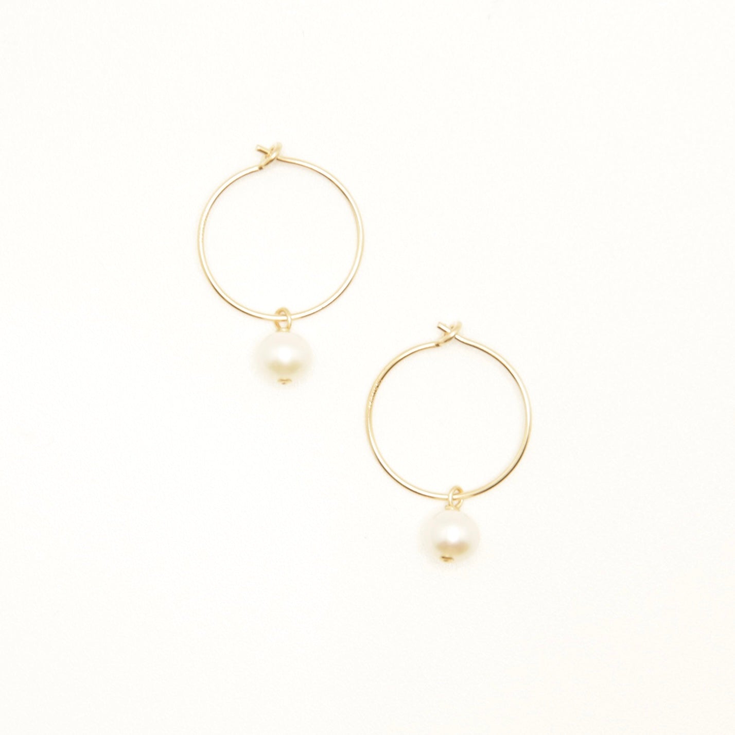 freshwater pearl drop wire hoops, made to last in 14k gold fill.