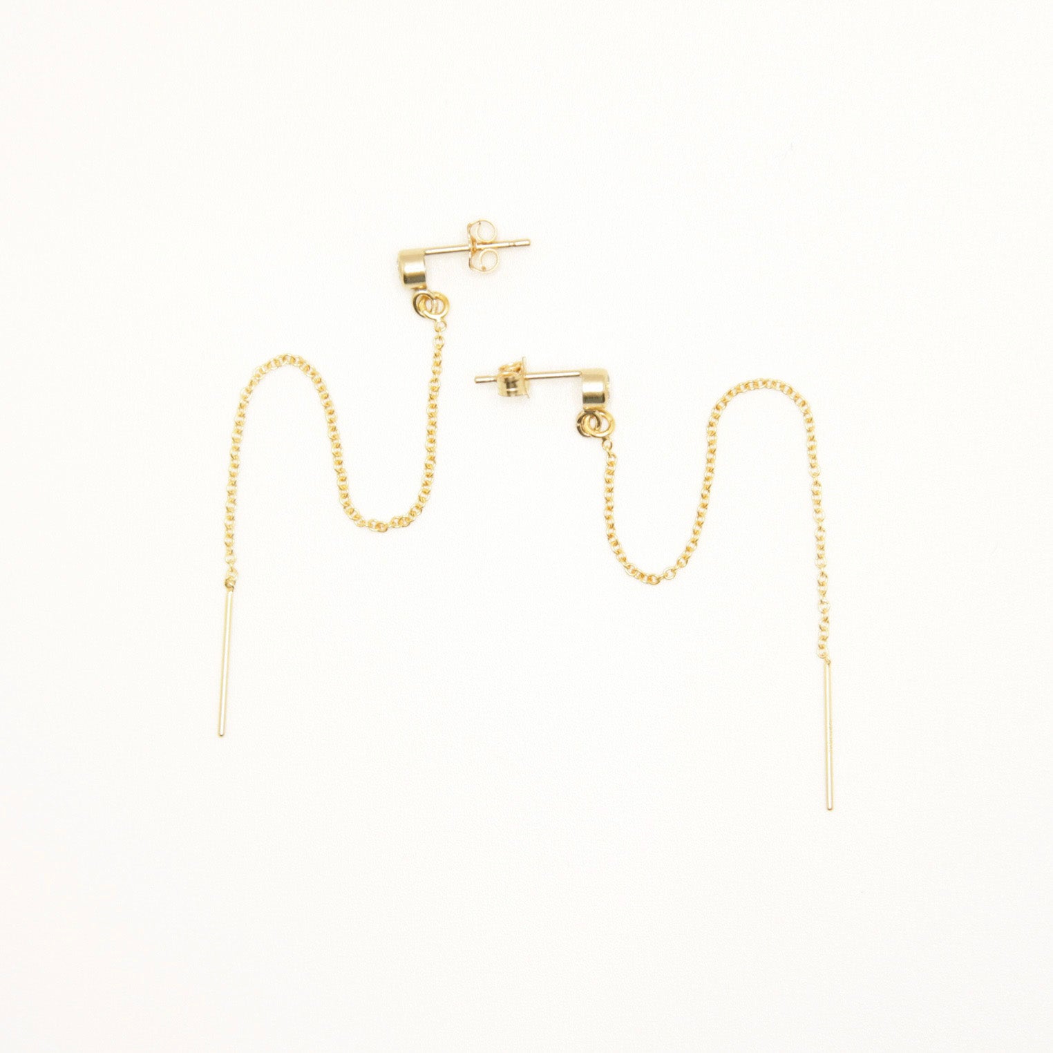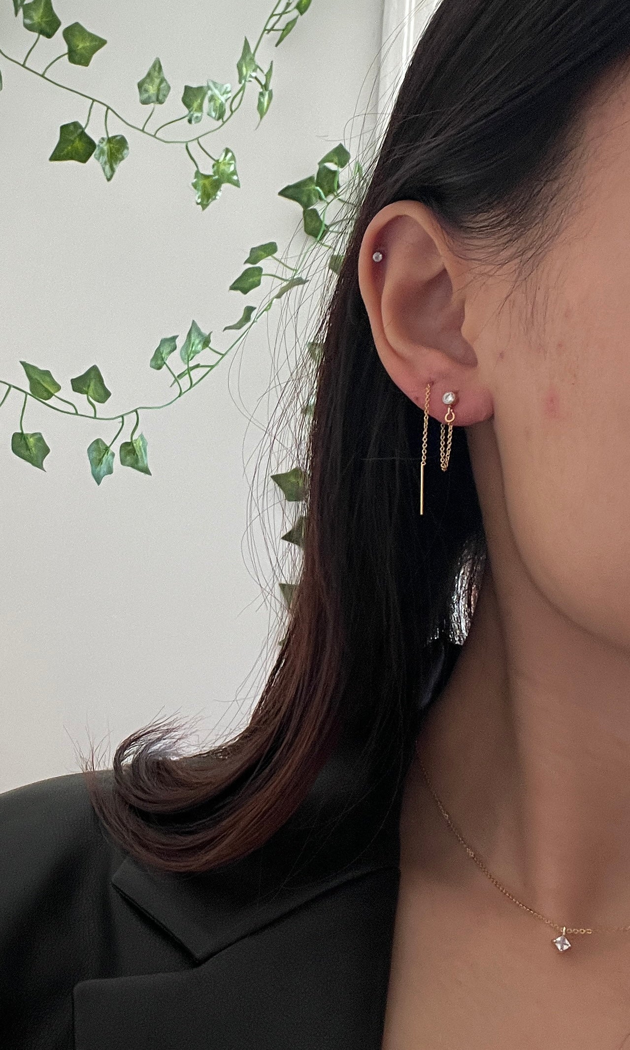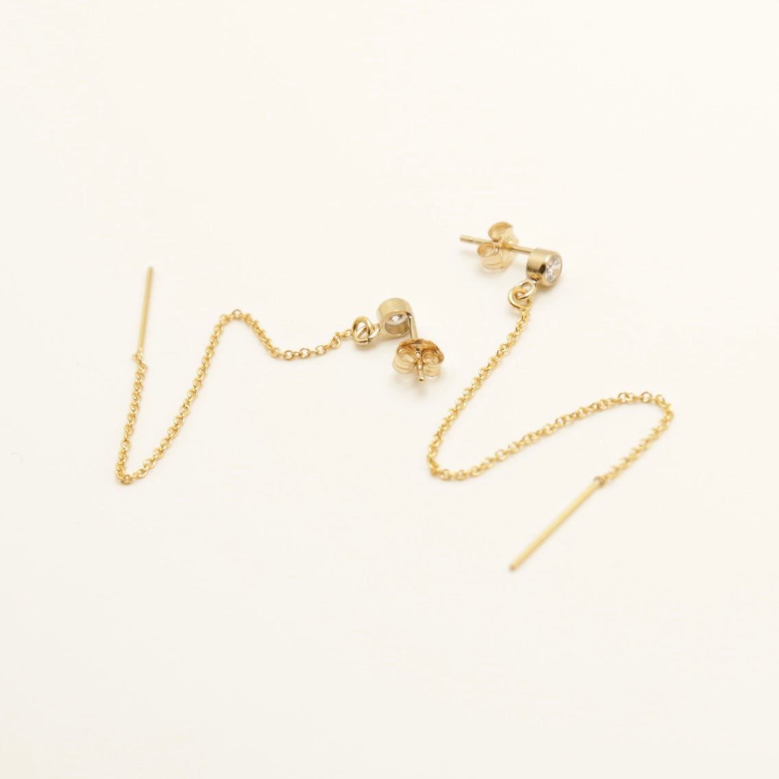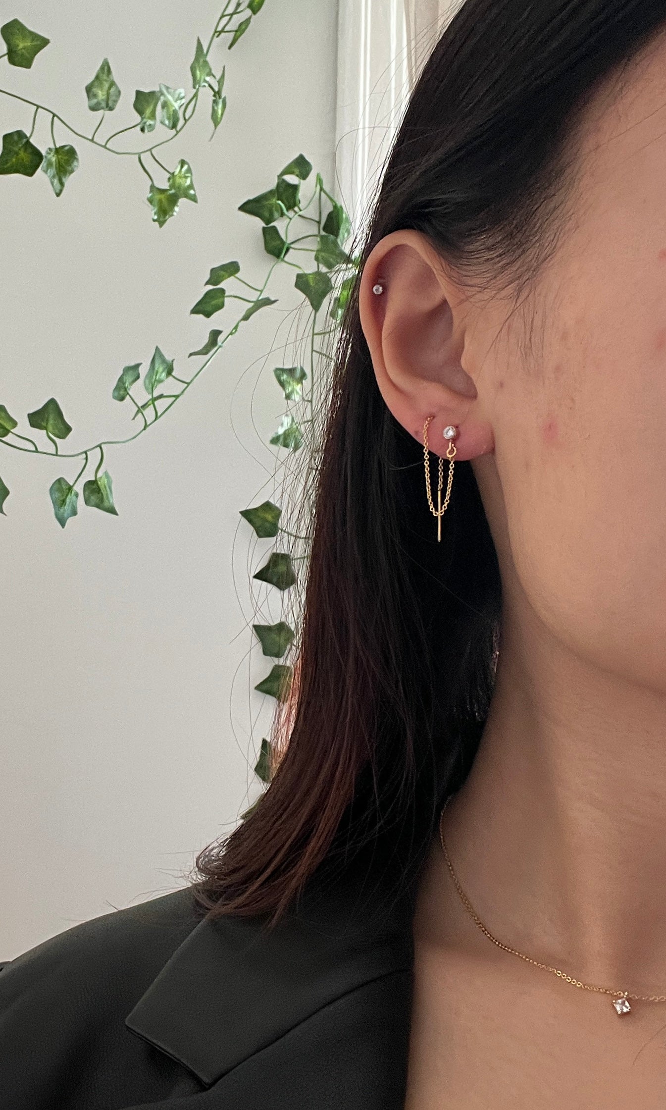 stud + threader earrings. made for two lobe piercings; multiple ways to wear. cubic zirconia set in 14k gold fill.