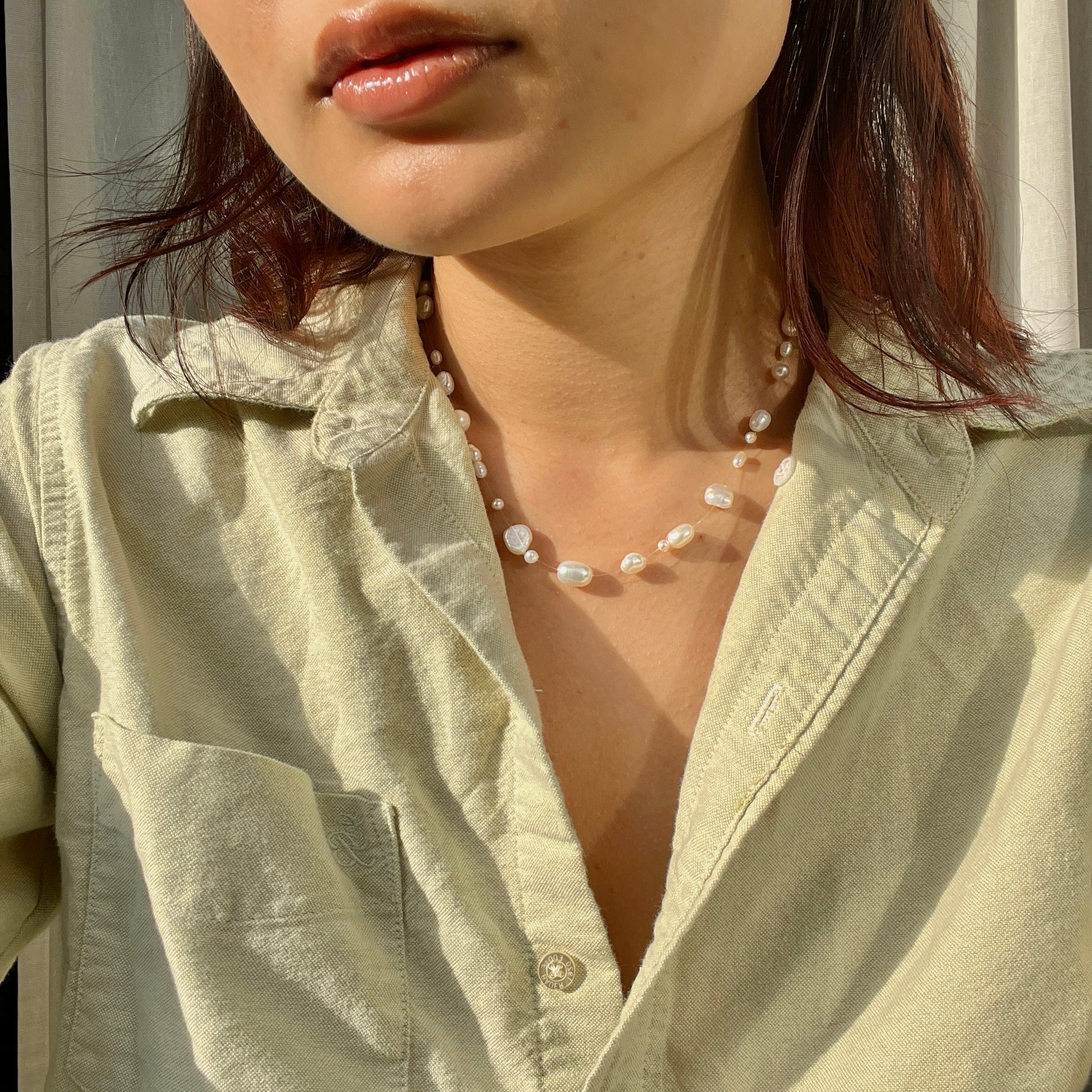 our original 'floating pearl' necklace — a contemporary take on the classic freshwater pearl necklace