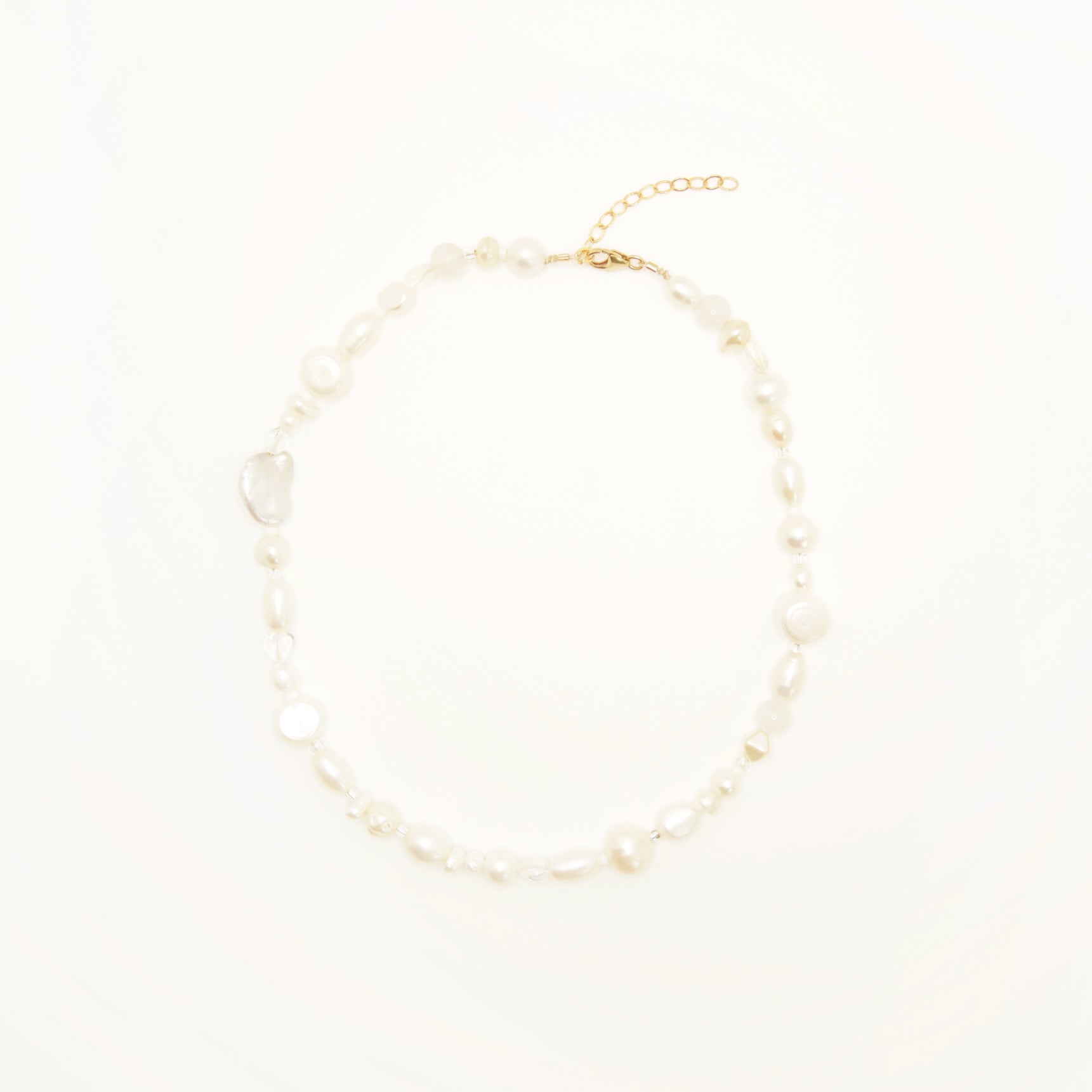 beaded necklace with freshwater pearls, japanese + czech glass beads, finished with a 14K gold fill or sterling silver clasp.