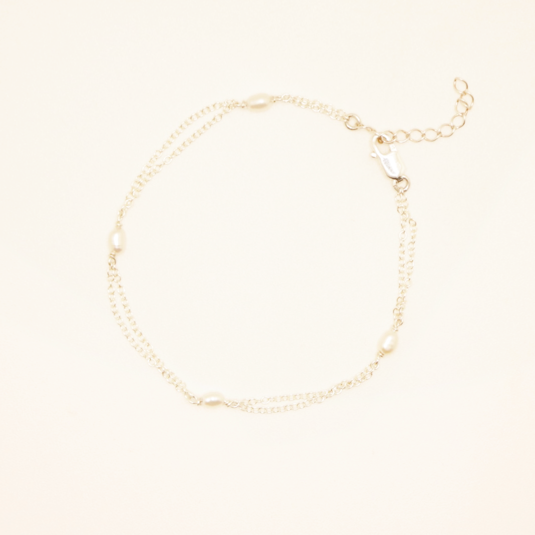 double-strand pearl bracelet, available in sterling silver and gold fill. hand-made to order with mini freshwater pearls. please note the # of pearls is variable from 3-5 depending on the length :)