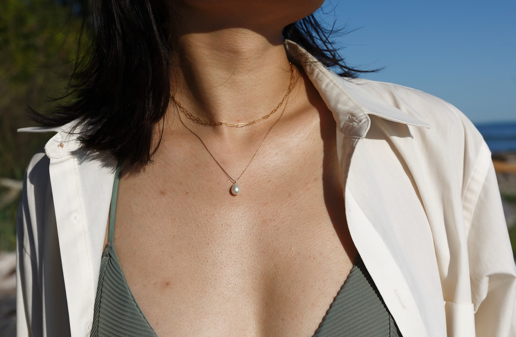 freshwater pearl drop necklace! custom sizing available upon request :') pair with the mini billie chain!