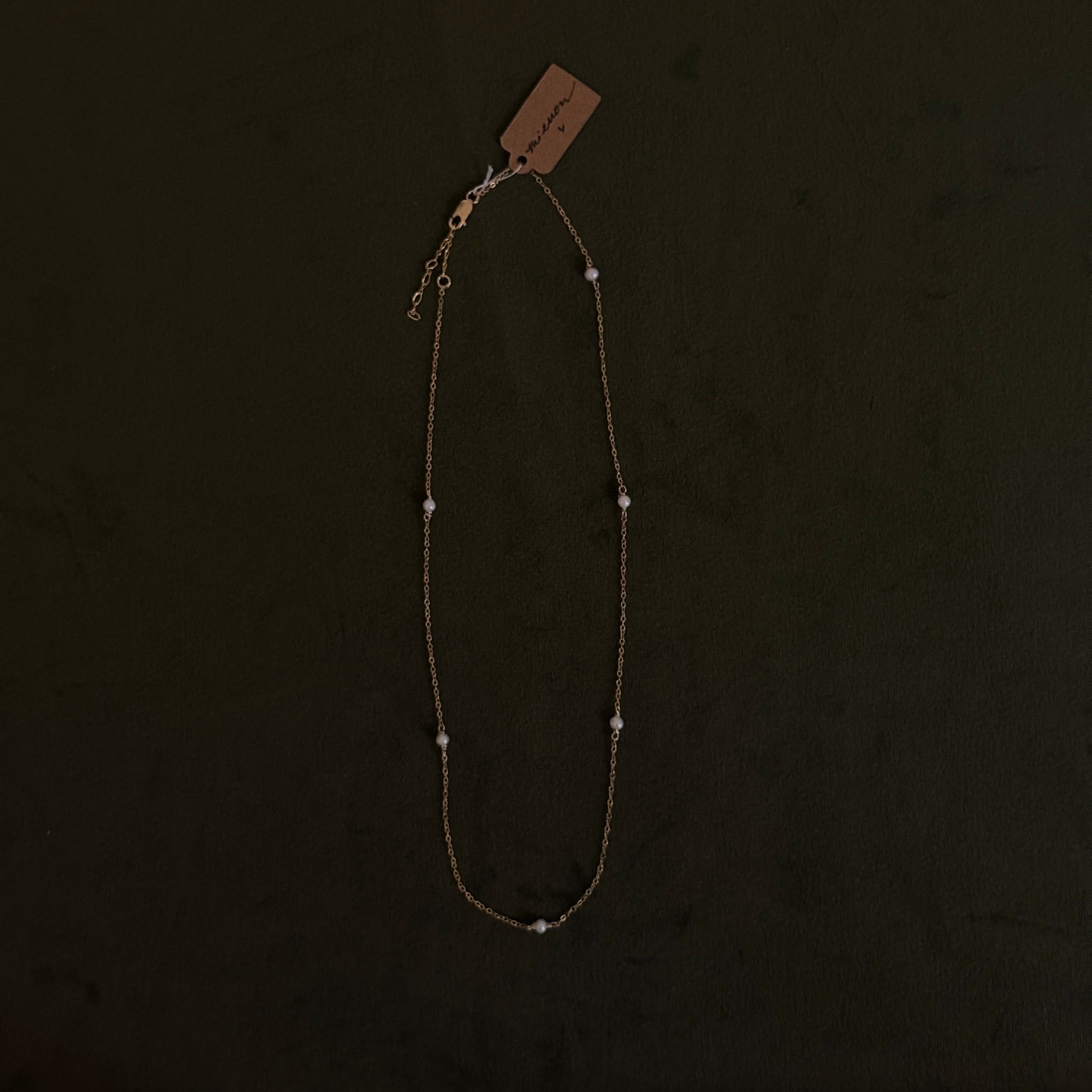 gold fill chain with mini freshwater pearls studded throughout, 15.5"-16.5"