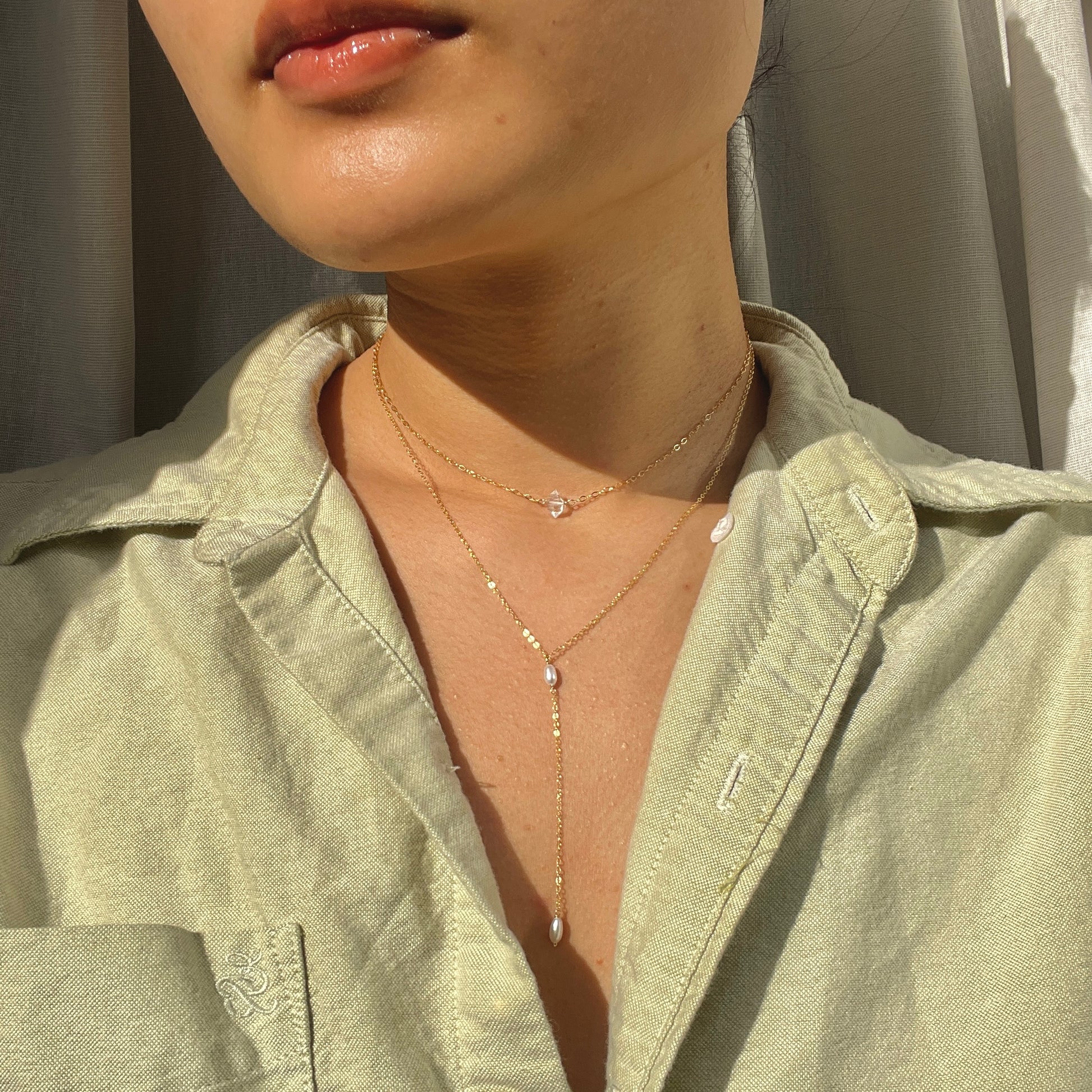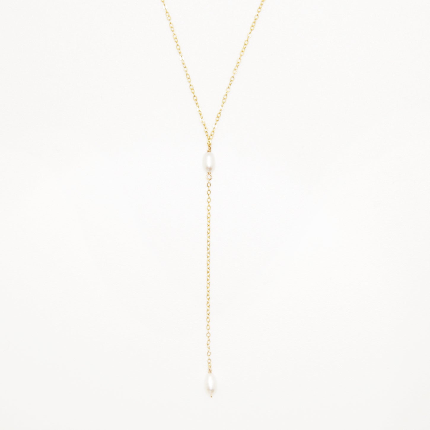 freshwater pearl drop lariat necklace, made to last in 14k gold fill or sterling silver.