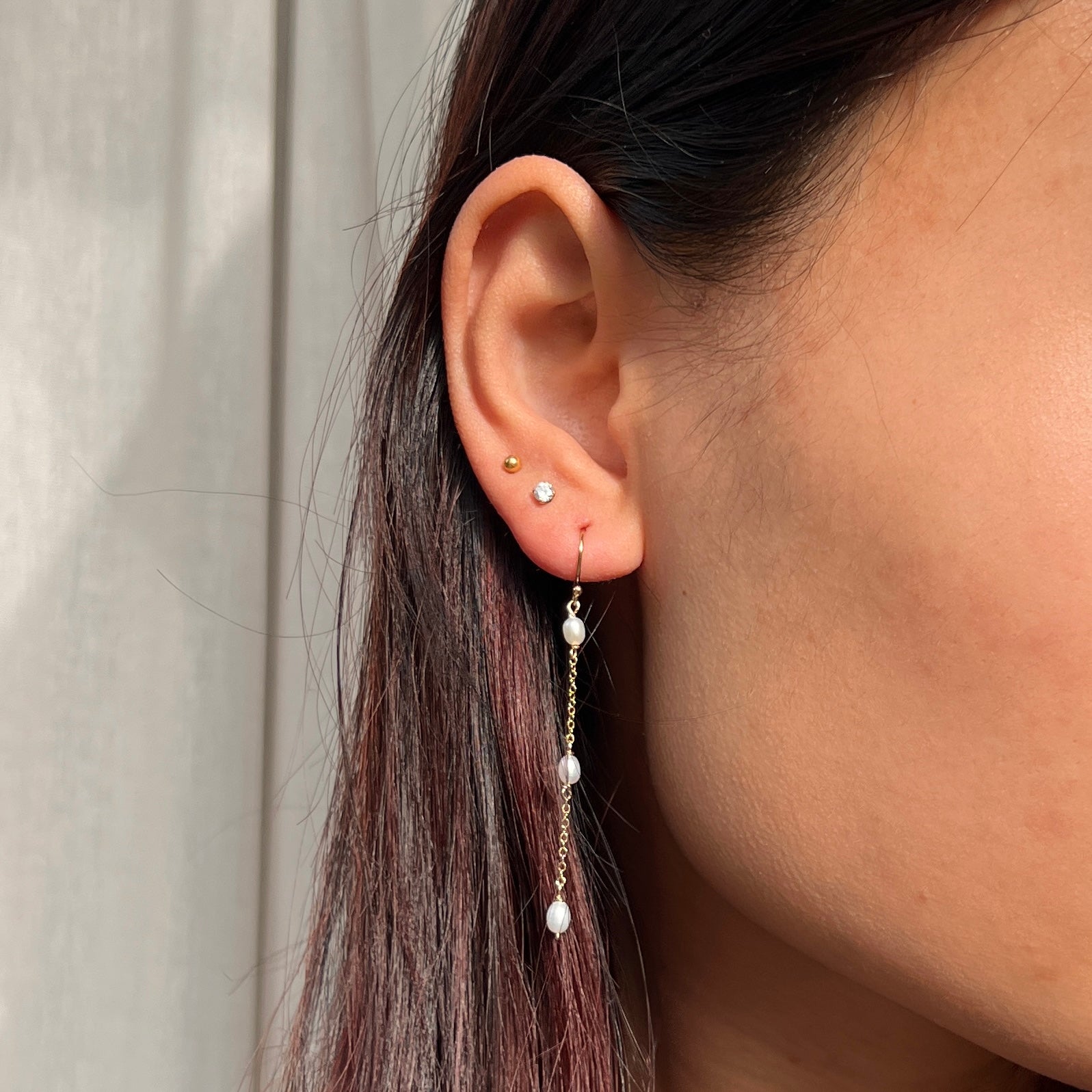 three-tiered mini freshwater pearl drop earrings