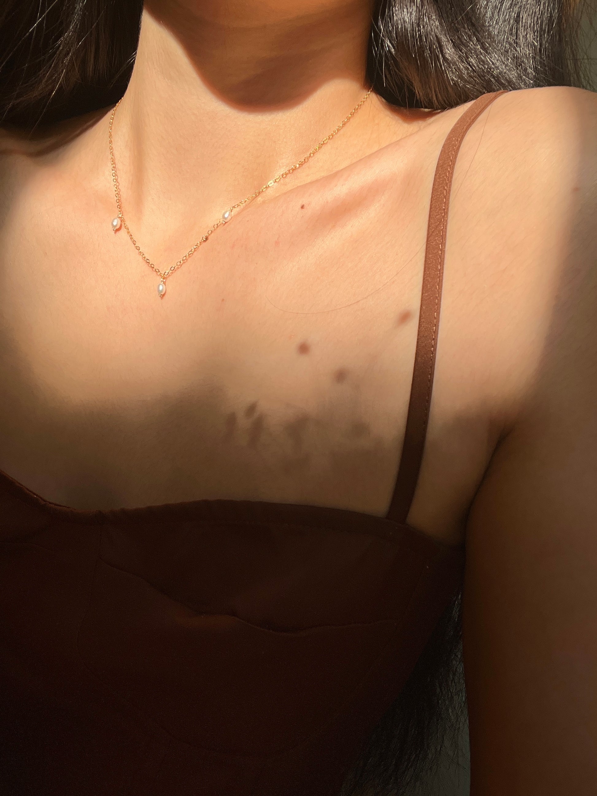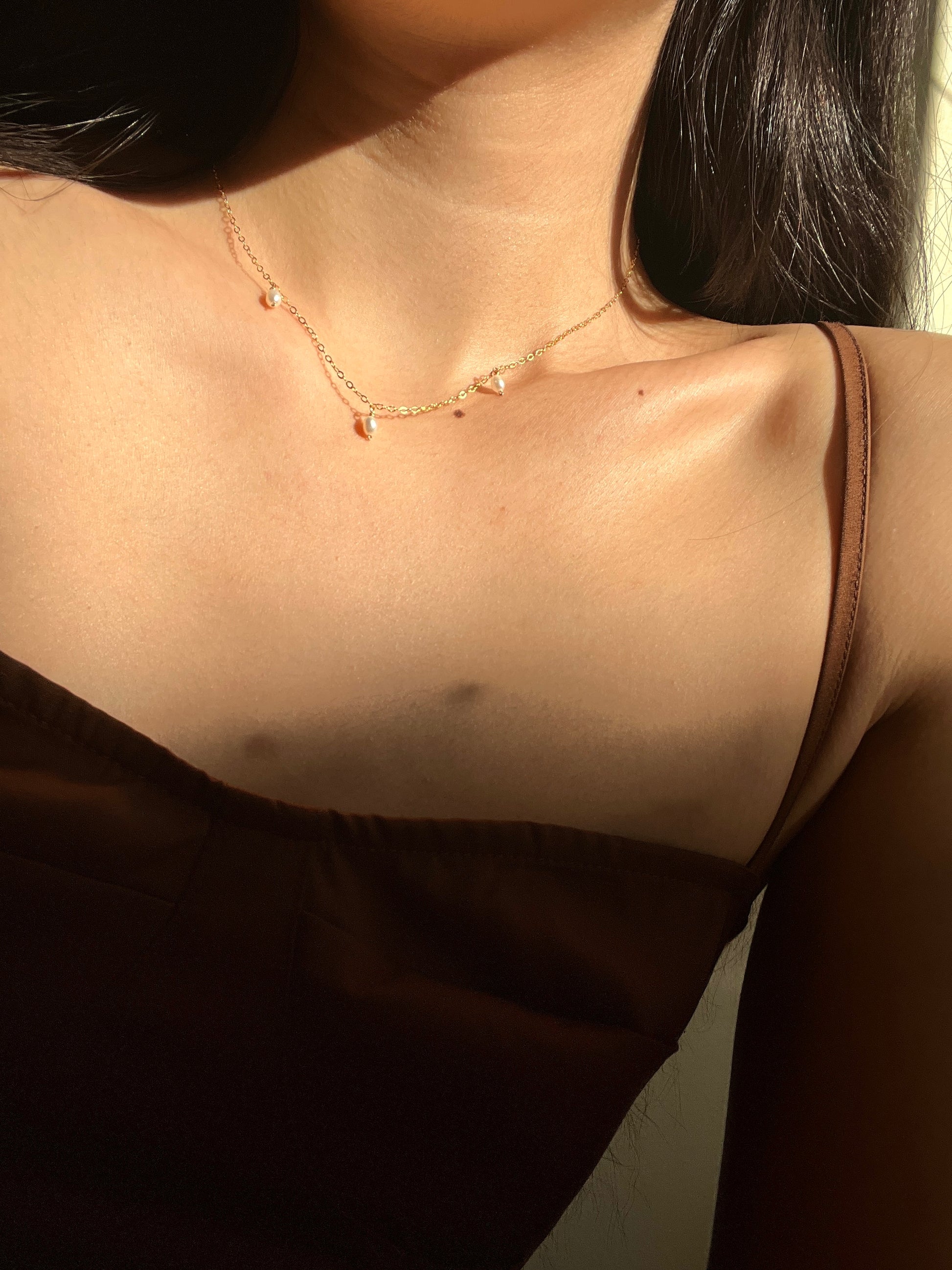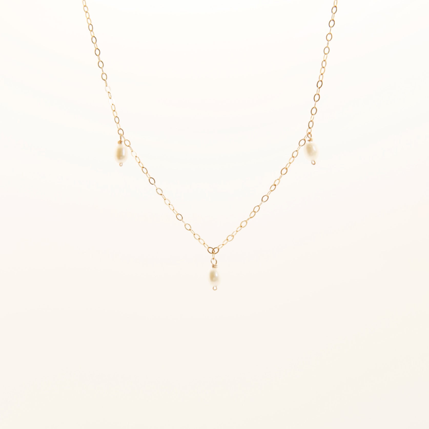 14K gold-fill / sterling silver mini chain + trio of freshwater pearls
