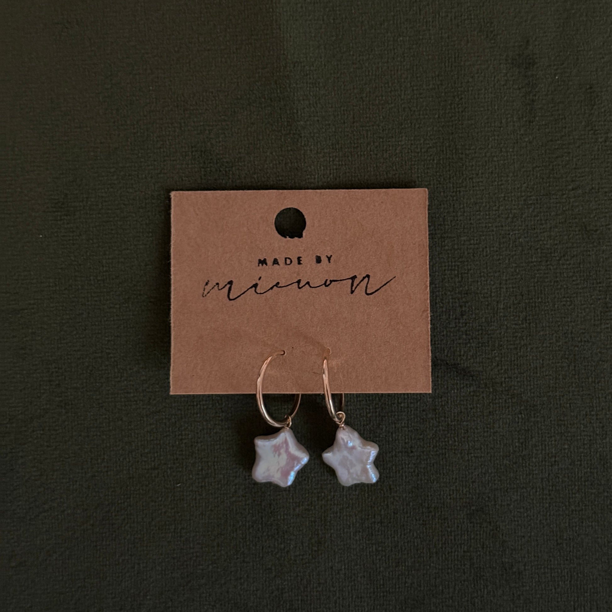 natural star-shaped freshwater pearls on gold fill hoops