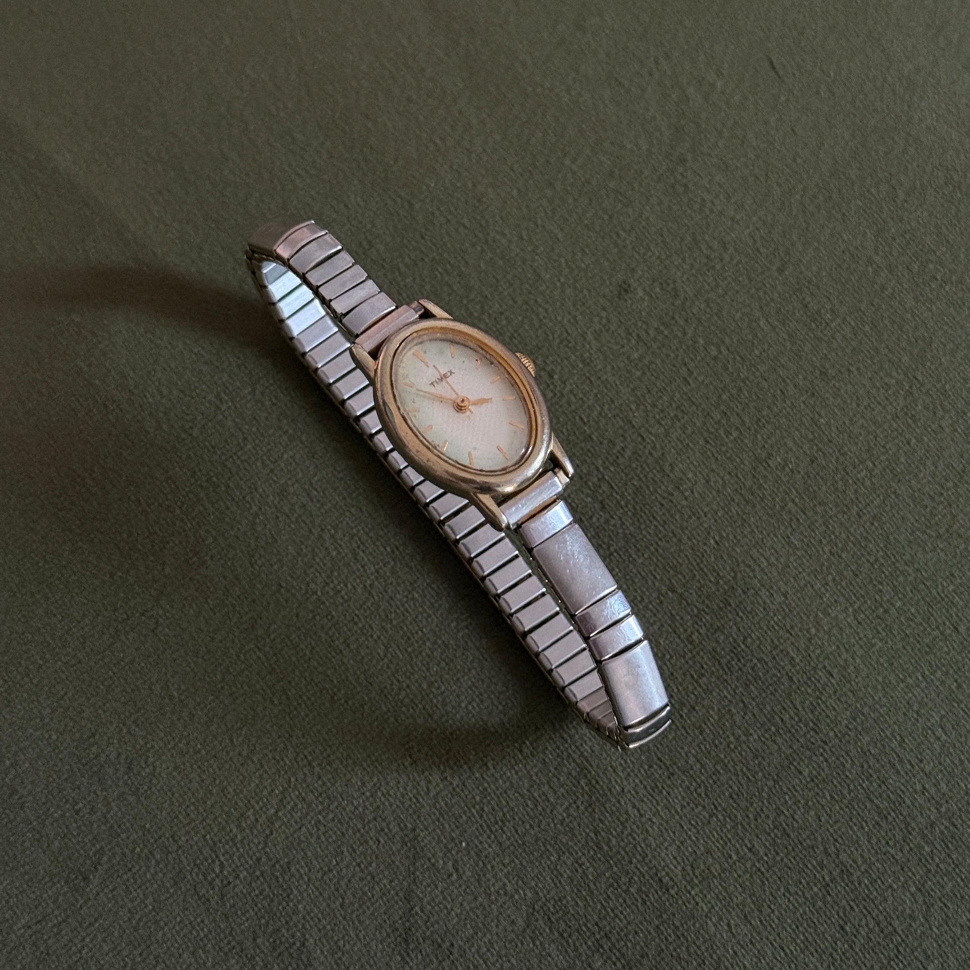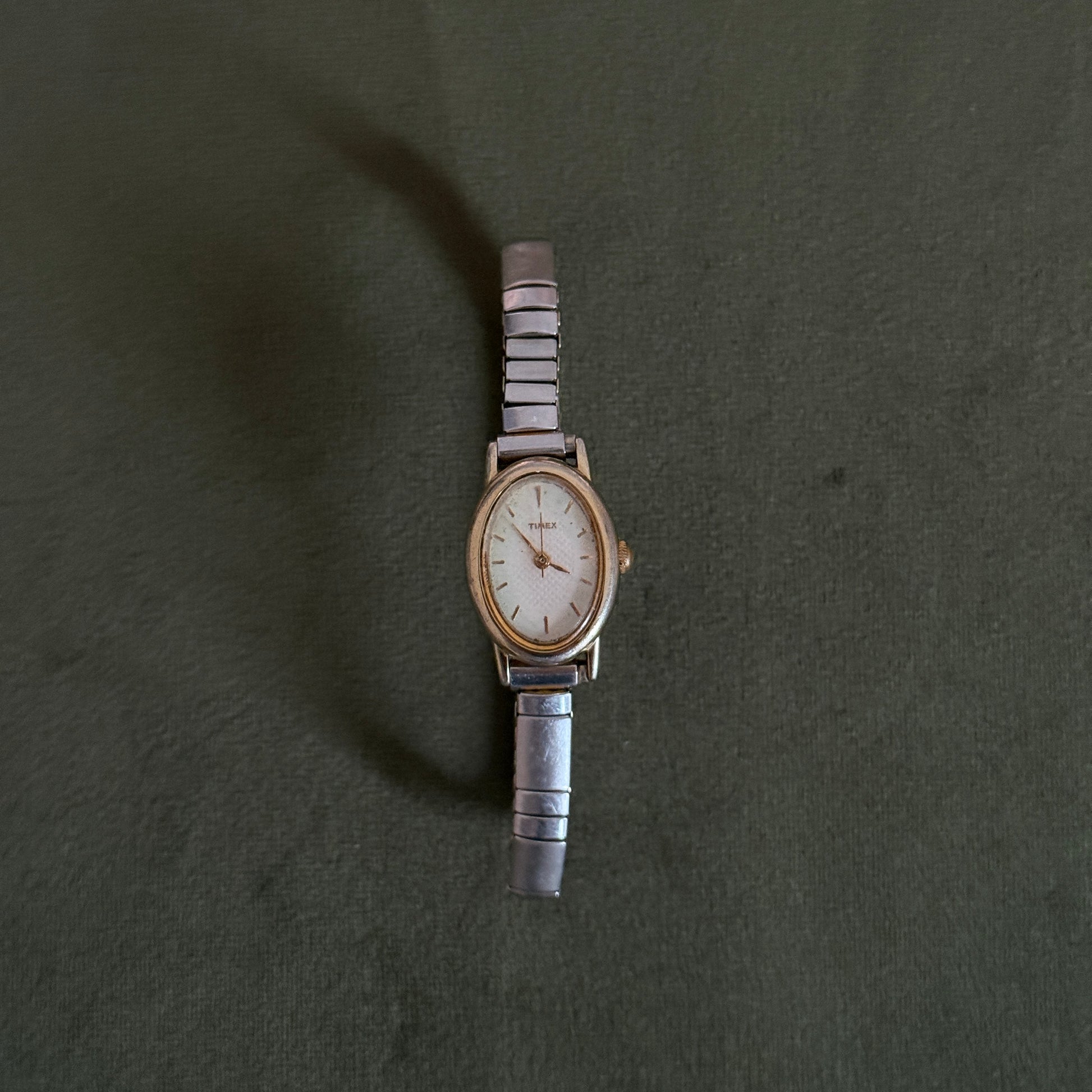 a pre-loved, vintage mixed-metals timex watch. sold as-is.