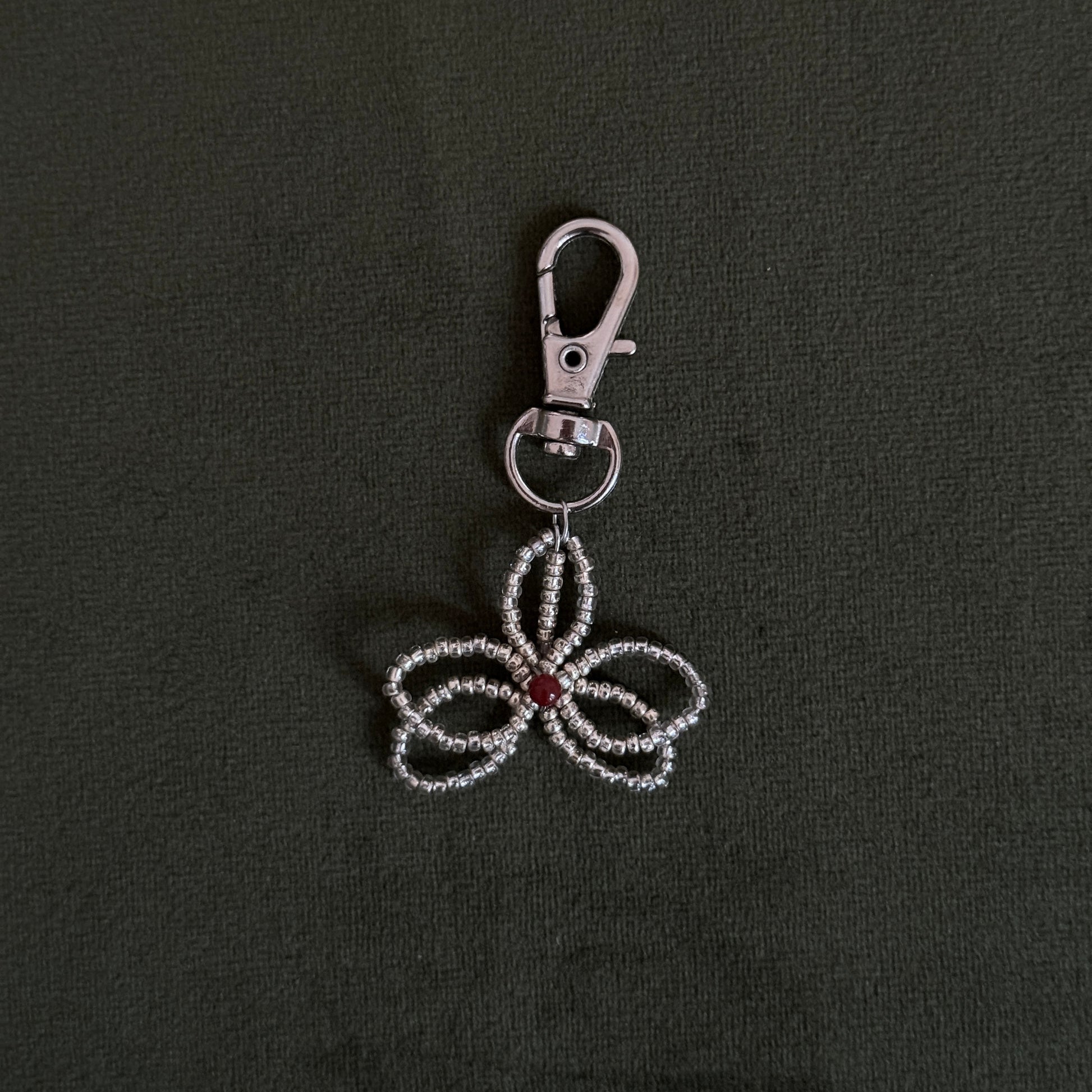 handmade silver + carnelian beaded orchid bag charm, stainless steel hardware