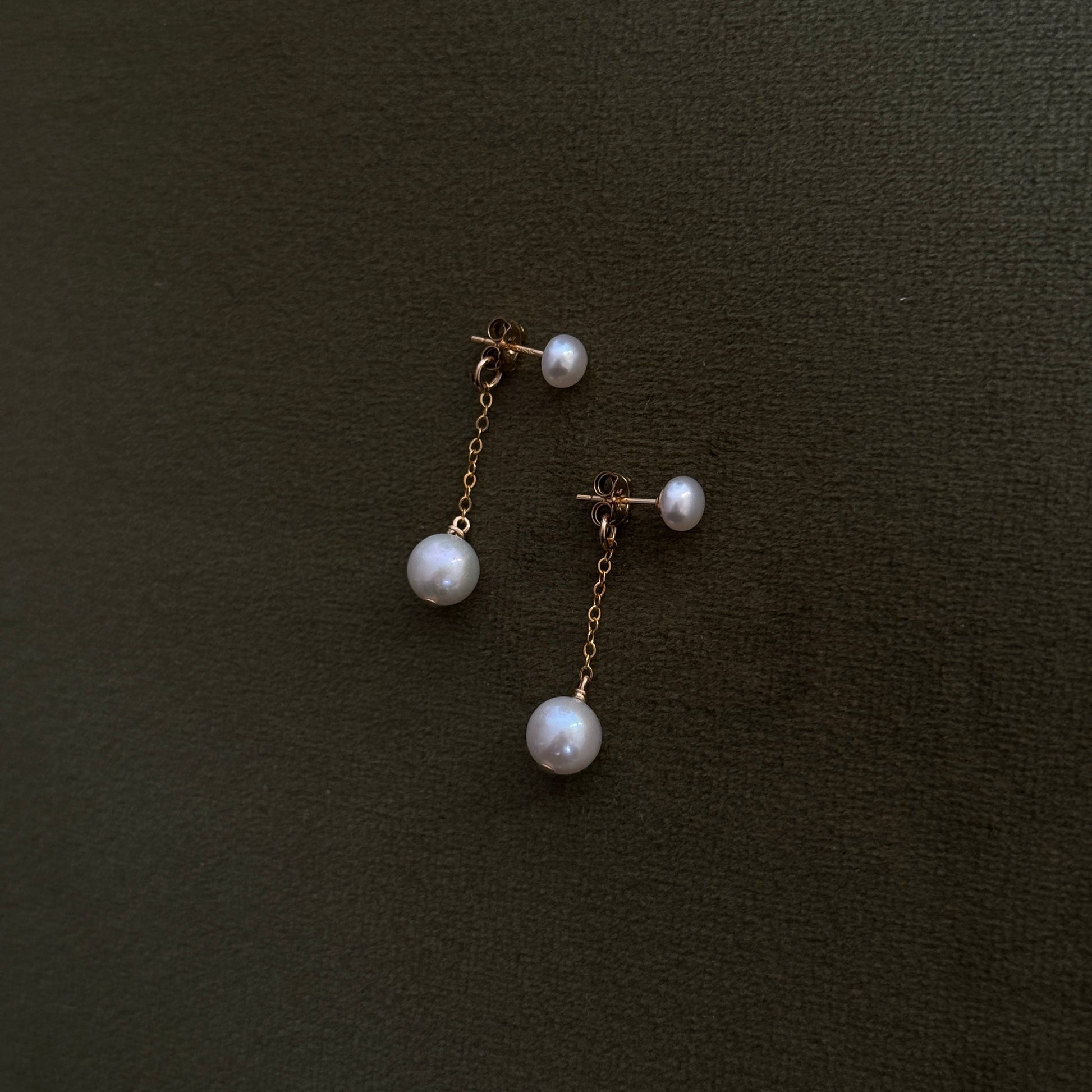 an elevated classic—14k gold-fill freshwater pearl studs with a freshwater pearl drop.