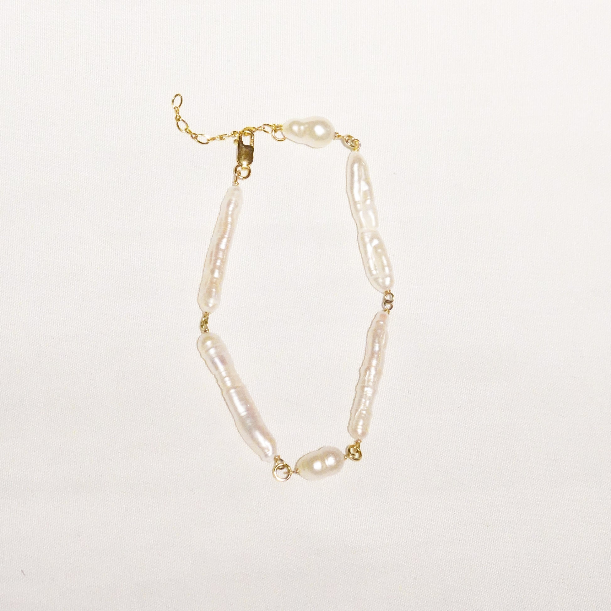 baroque pearls with 14k gold fill hardware. fits 6.5"-7.5".