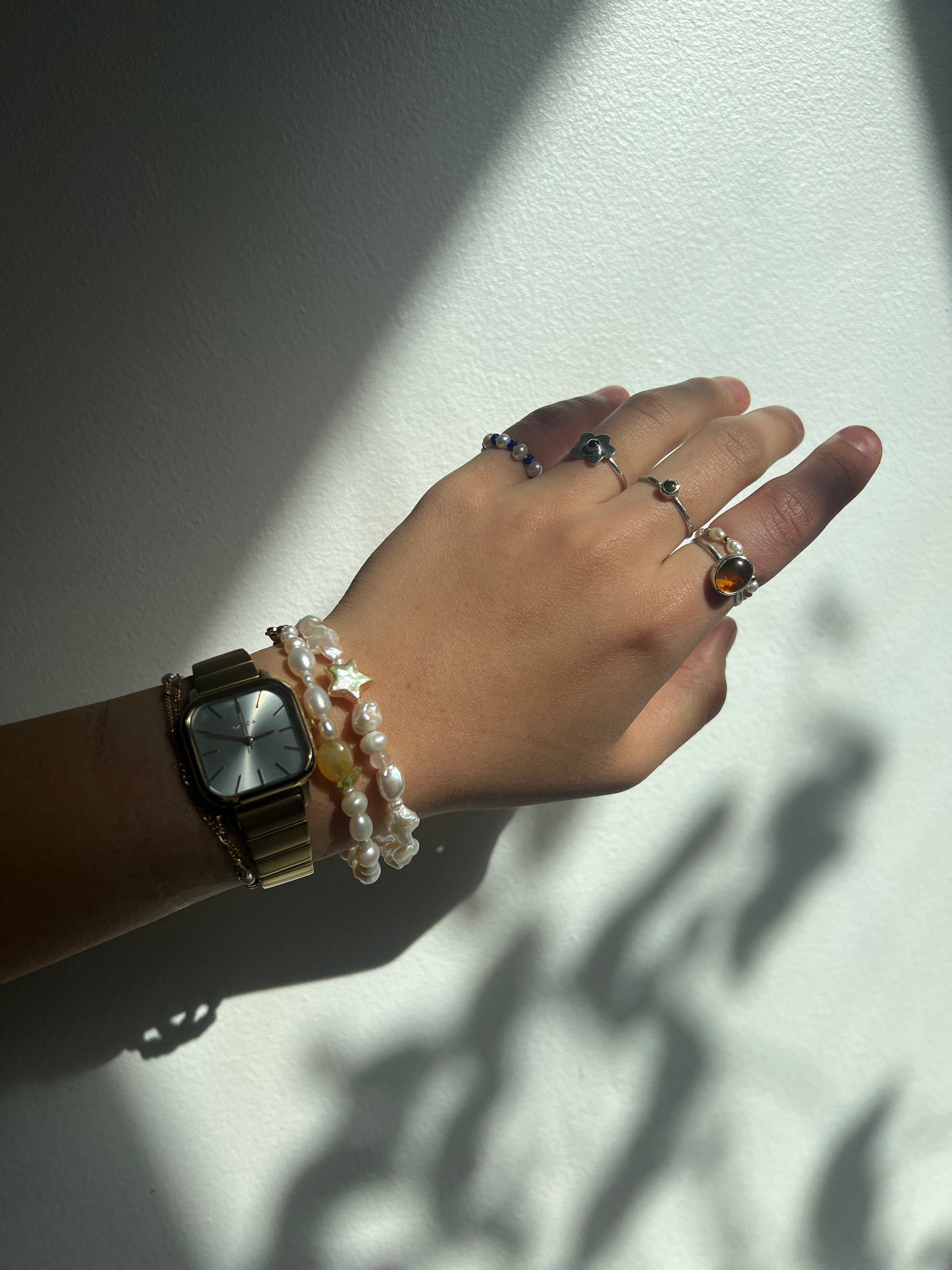 1-of-1 freshwater pearl beaded bracelet with a pink star pearl!
