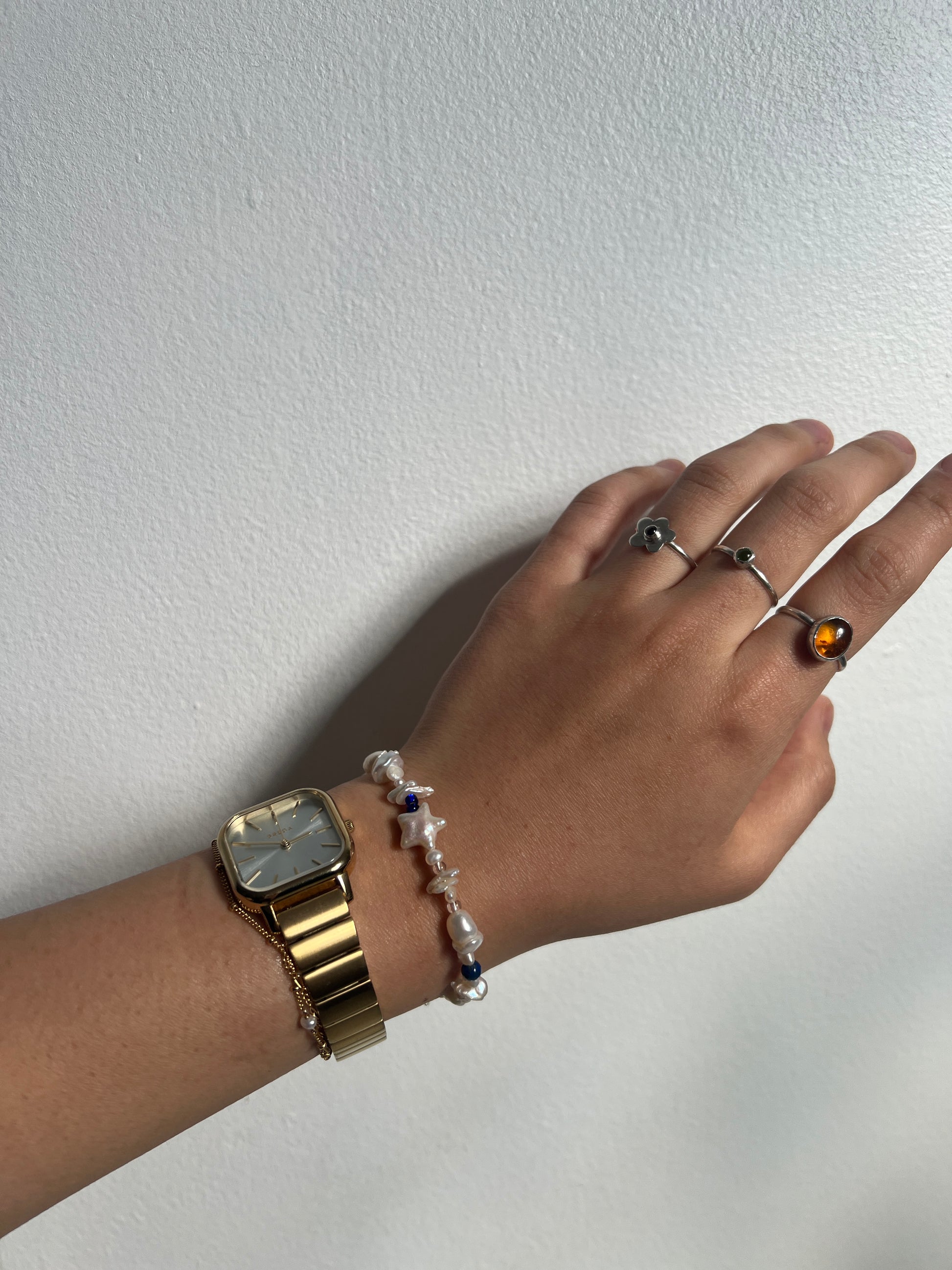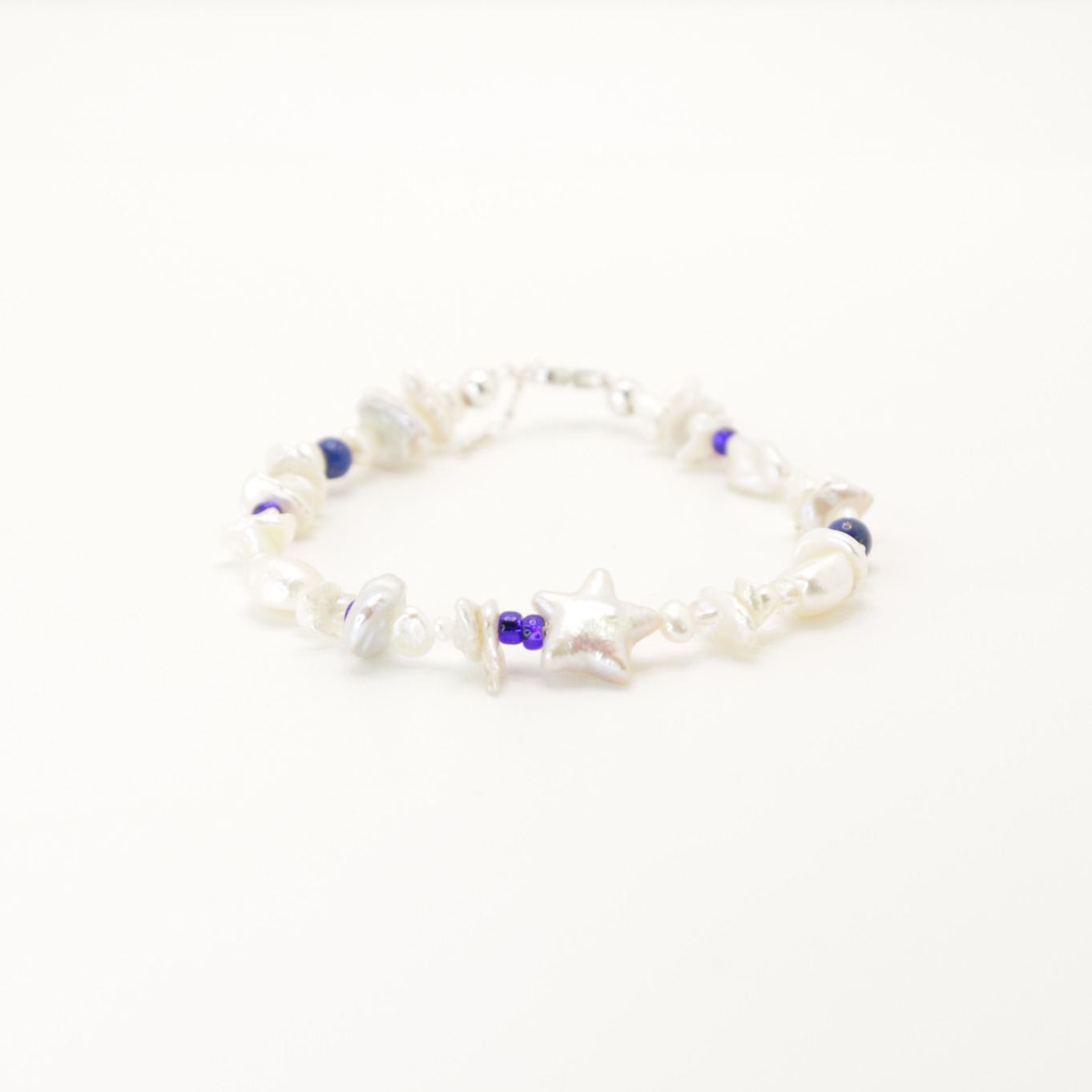 freshwater pearl beaded bracelet with a star pearl and lapis lazuli gemstone!