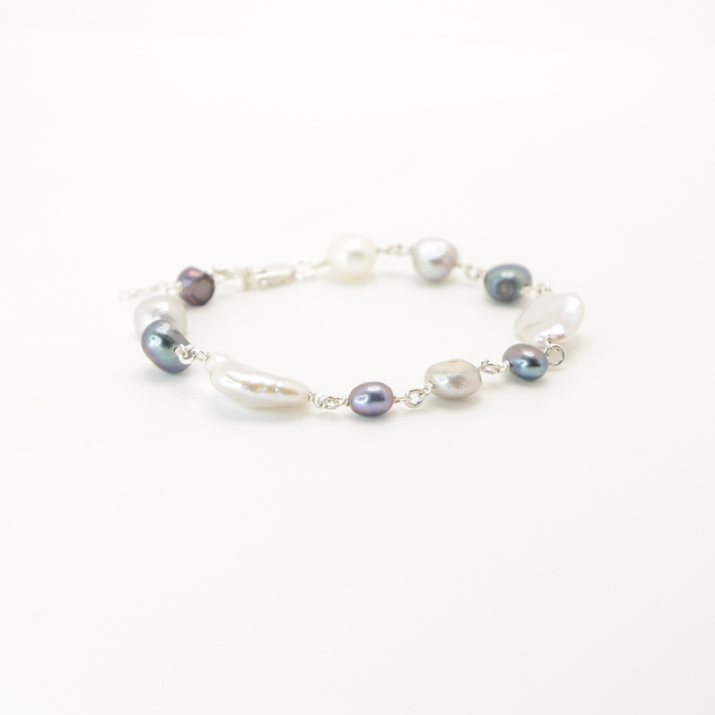 1-of-1 bracelet made with a variety of naturally-coloured freshwater pearls