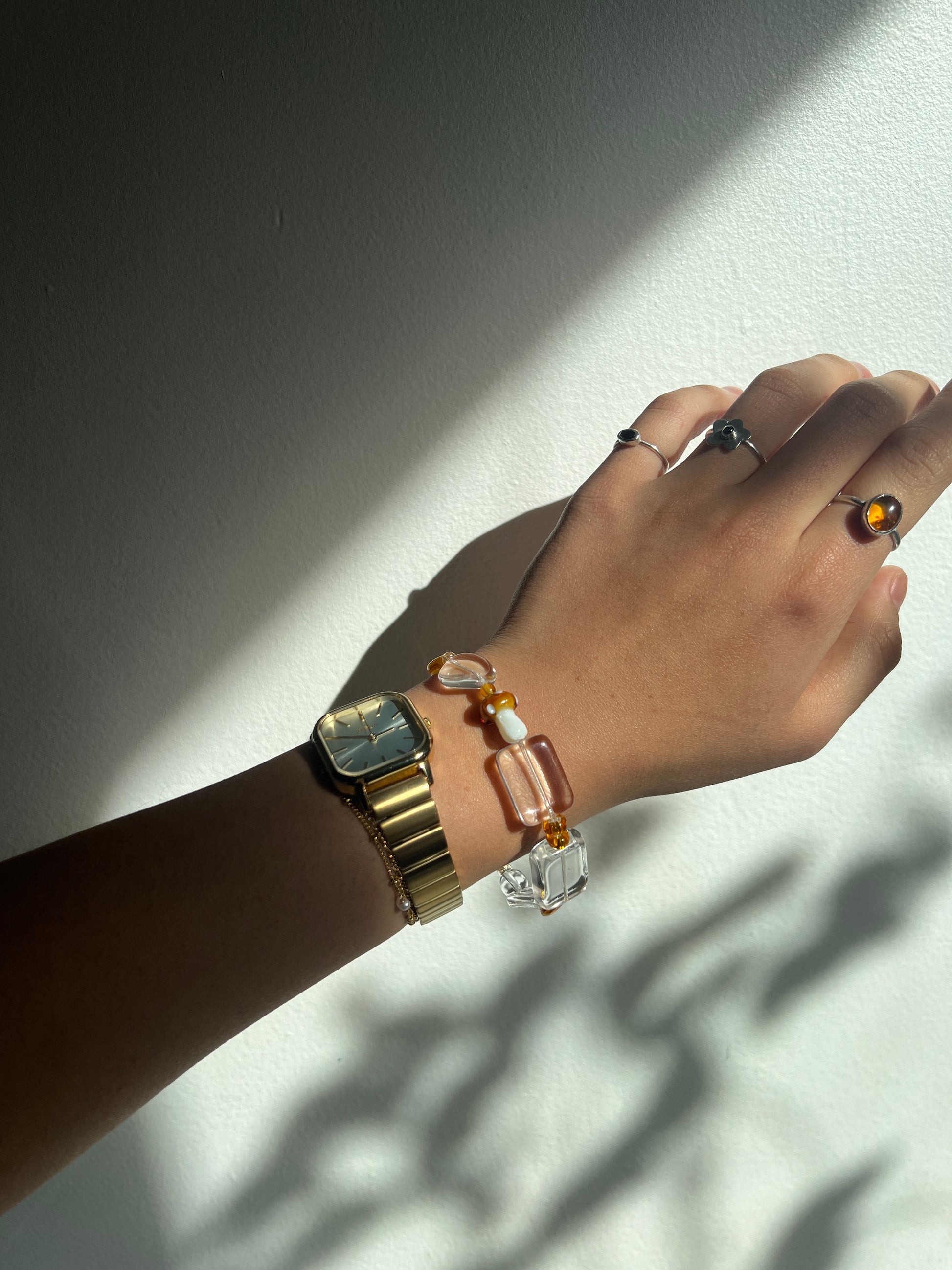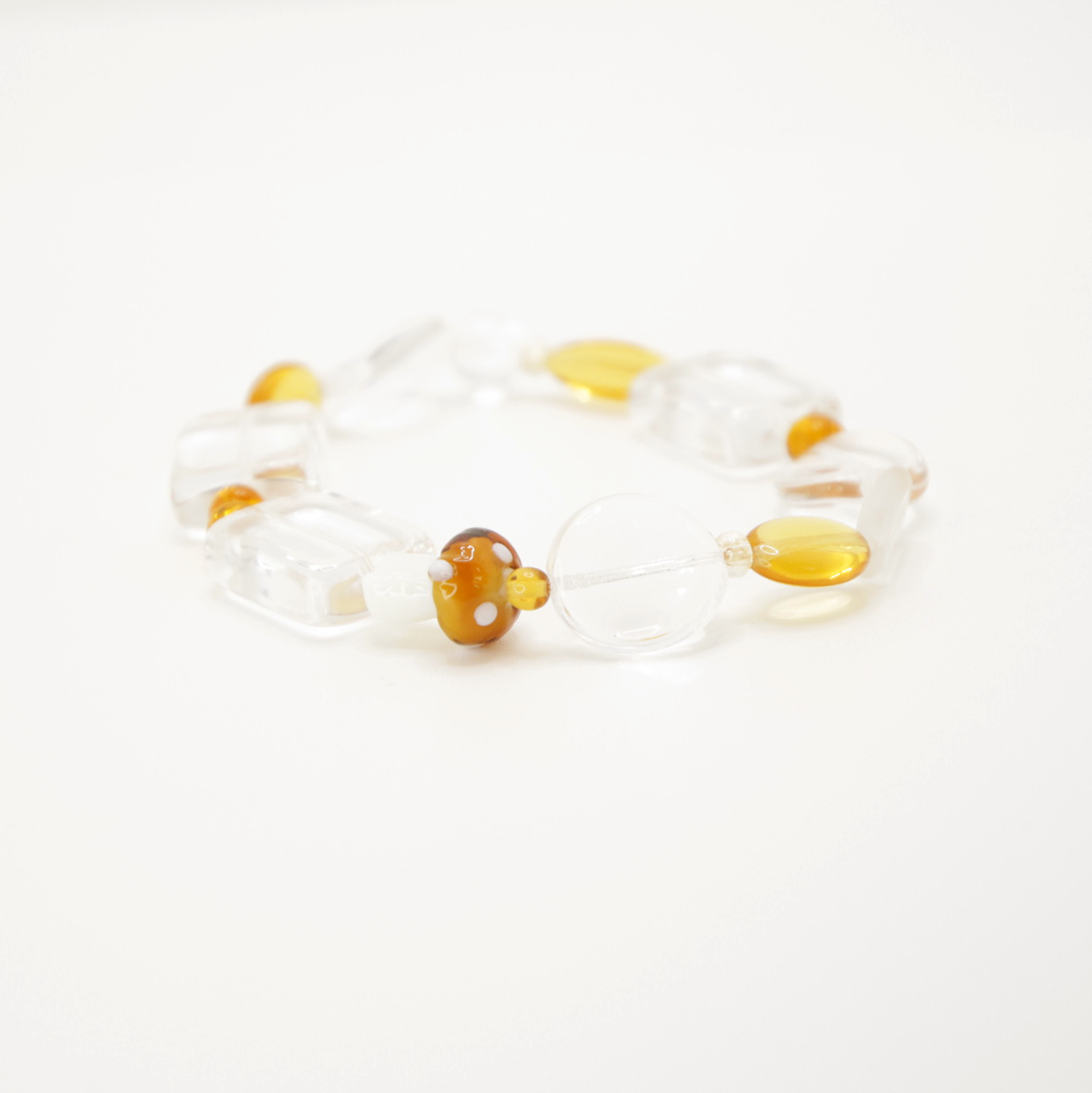 1-of-1 statement glass beaded bracelet with a mini mushroom! this one is stretchy - fits 6-7" wrist size!