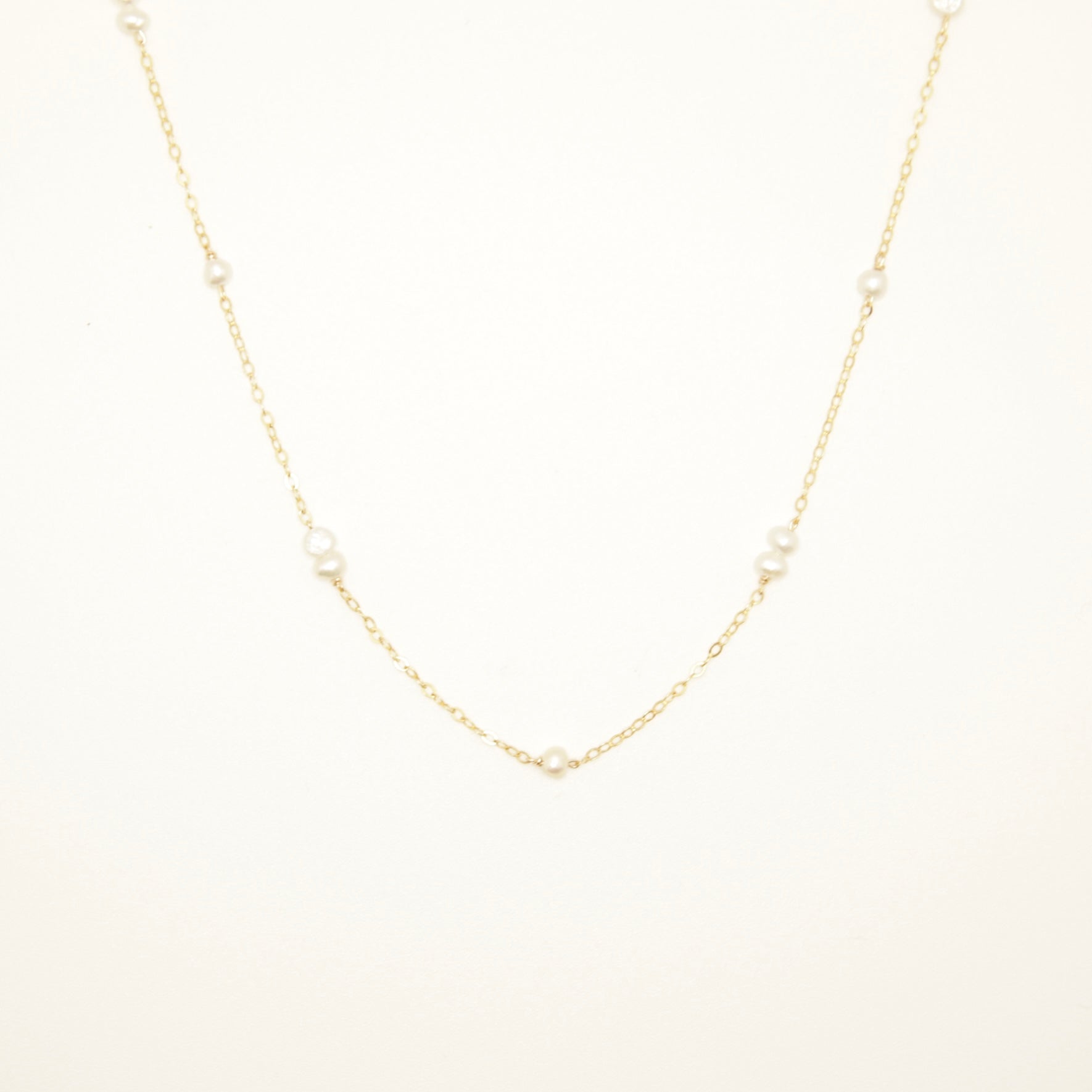 one of our all-time bestsellers, made to last in 14k gold fill or sterling silver. adorned with tiny baroque freshwater pearls. available as a necklace, bracelet or anklet!