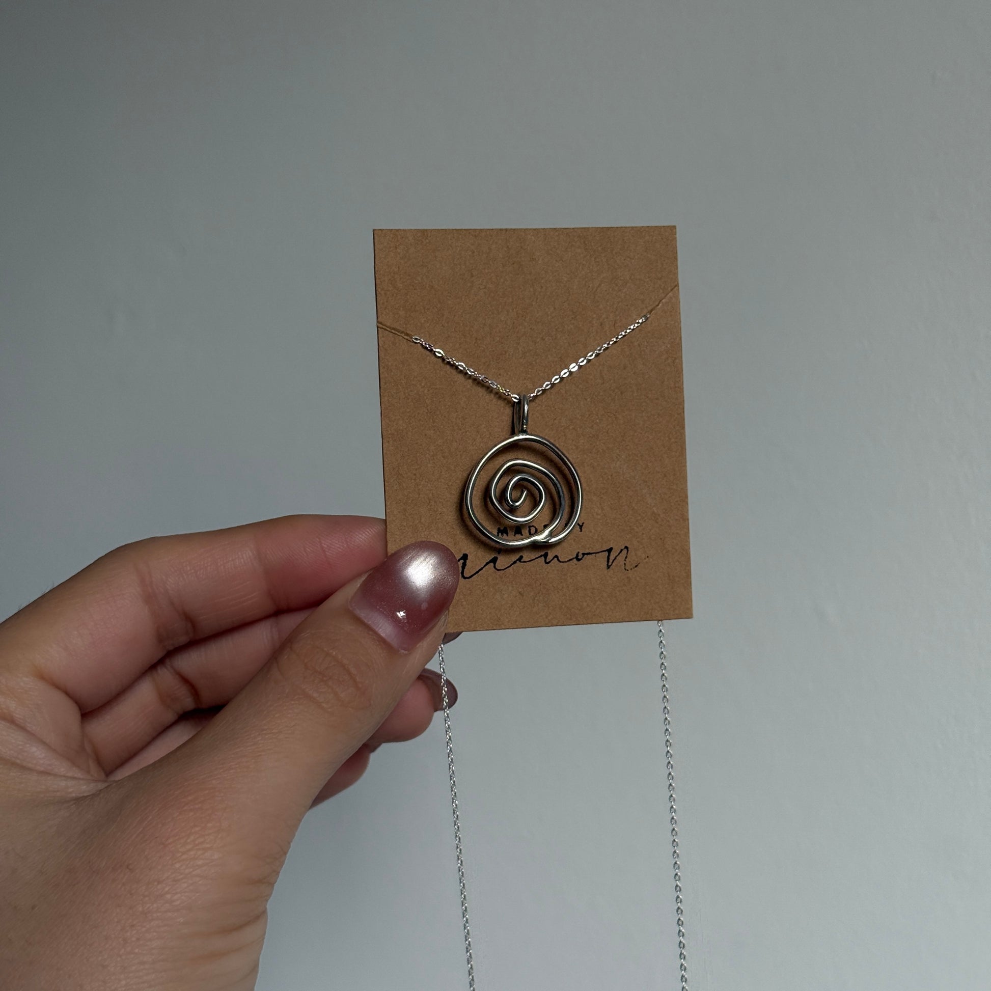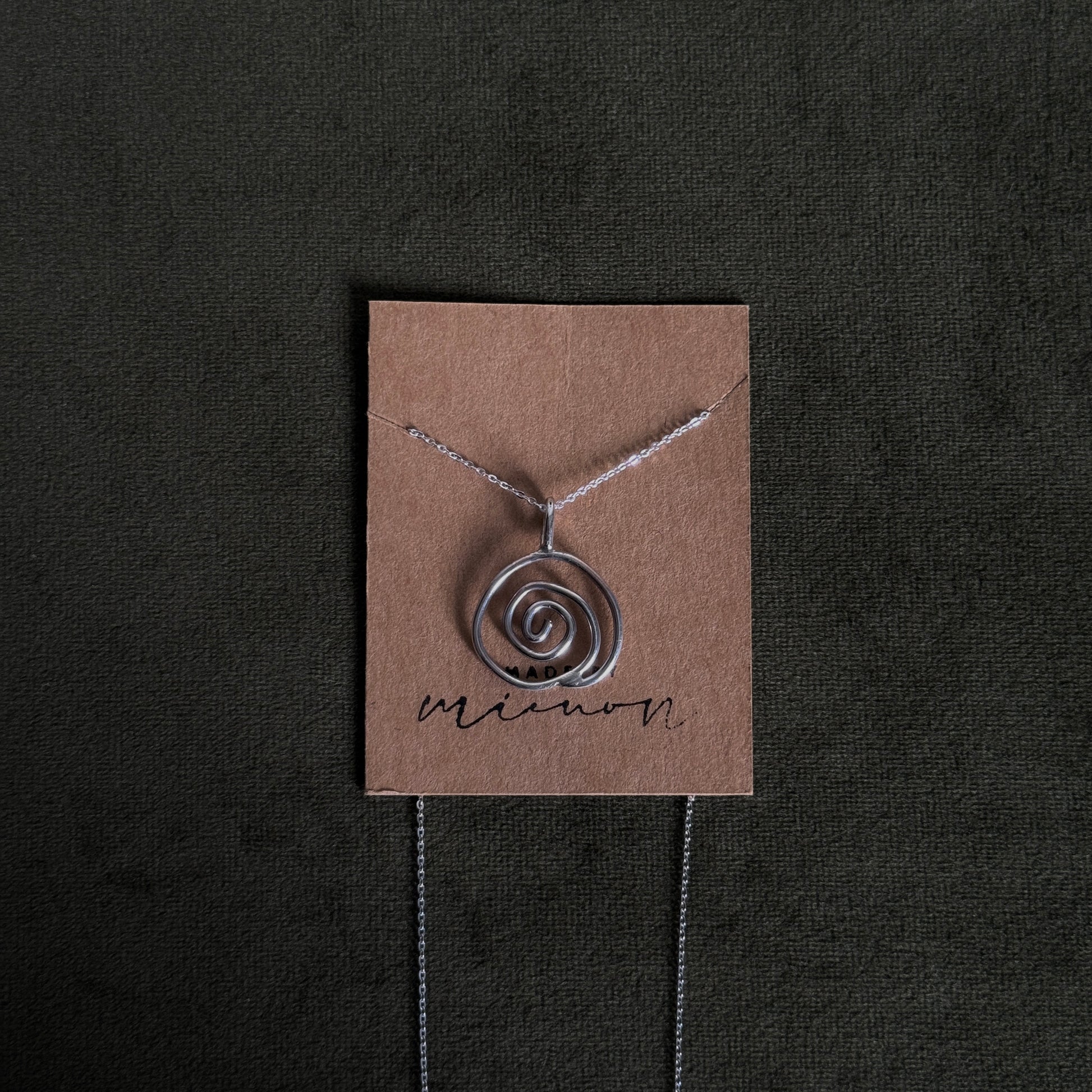 handcrafted sterling silver swirly necklace on a 18" chain.